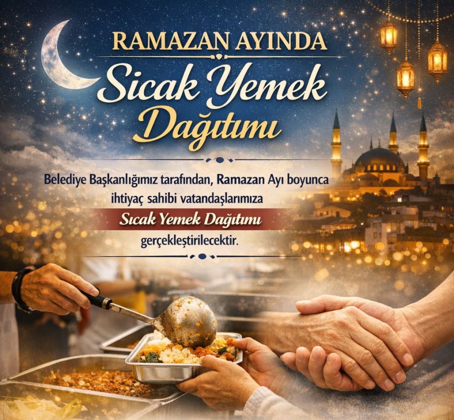 Belediye Başkanlığımız tarafından, Ramazan Ayı boyunca ihtiyaç sahibi vatandaşlarımıza sıcak yemek dağıtımı gerçekleştirilecektir.